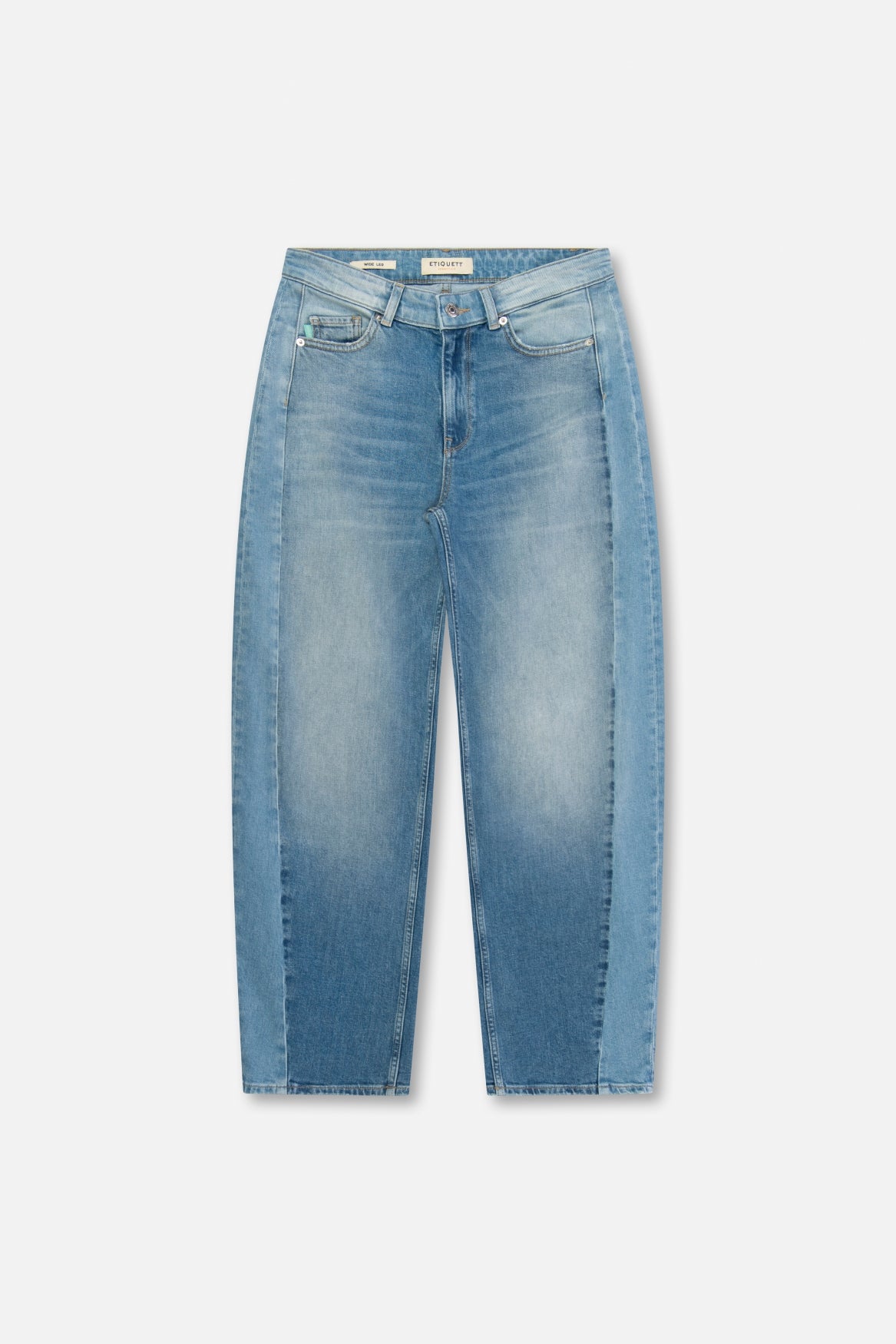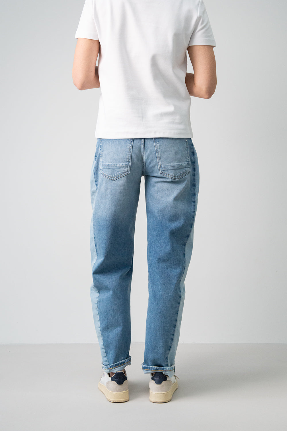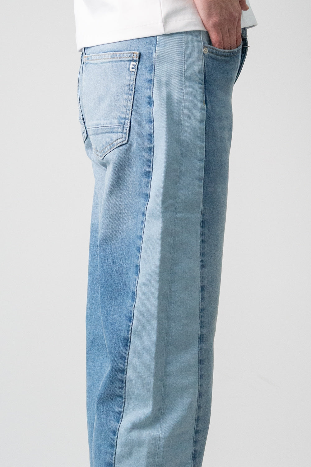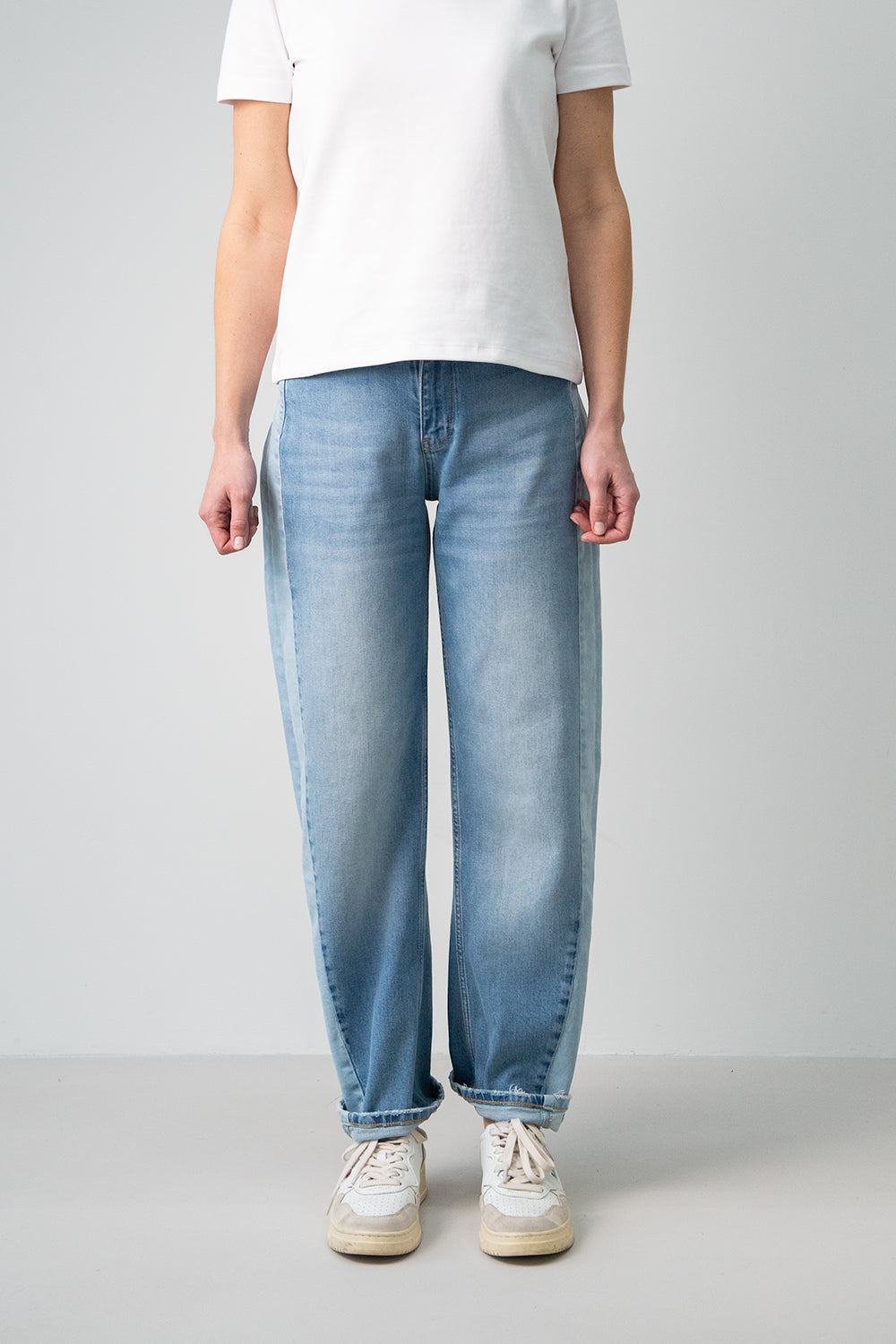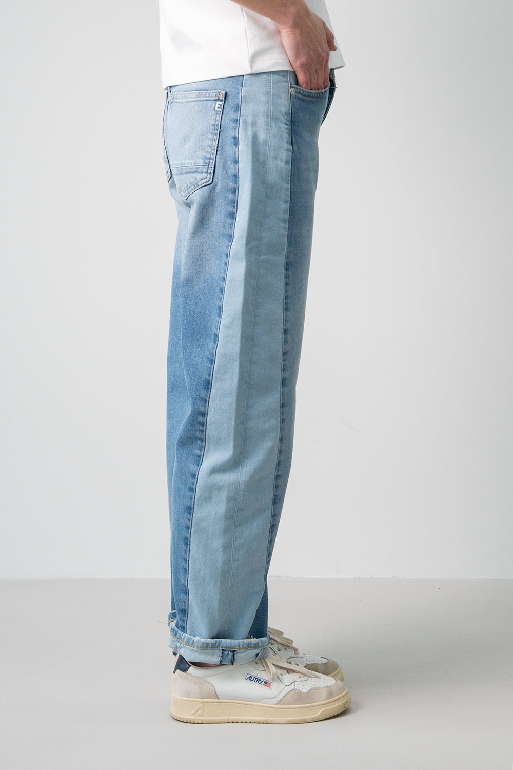 De denim voelt zacht aan en beweegt prettig met je mee, waardoor deze jeans perfect is voor dagelijks gebruik. De twee kleuren versterken optisch het silhouet en laten de pasvorm nog beter tot zijn recht komen. Dit subtiele contrast geeft de broek een moderne, onderscheidende uitstraling.