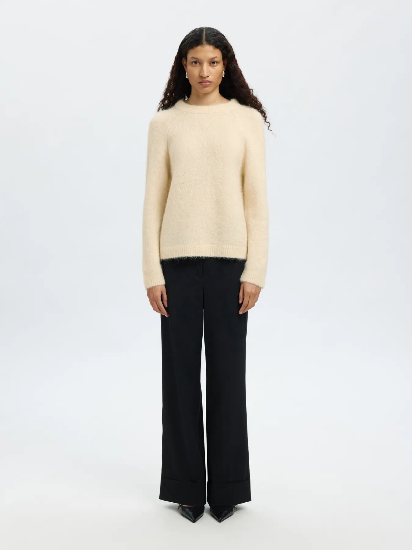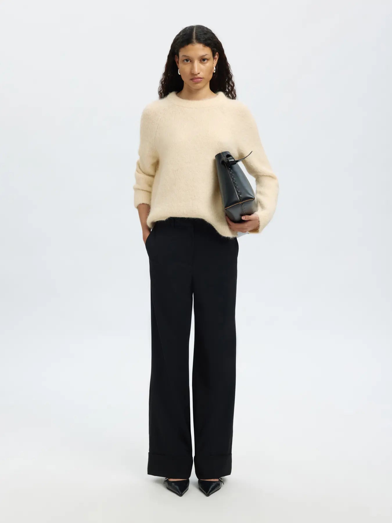 Prachtige knit van Selected met een lint als sluiting aan de achterzijde. de knit is gemaakt van een wolmix kwaliteit en valt vrij ruim.